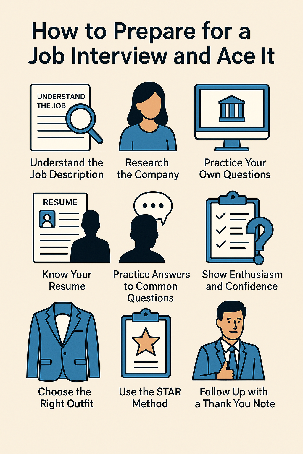 Acing a job interview isn’t about luck—it’s about preparation, self-awareness, and confidence. By researching the company, practicing your responses, dressing appropriately, and following up professionally, you’ll position yourself as a serious and capable candidate.